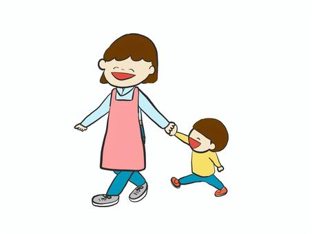 その後は、何度地面に降ろしても大泣きだったので、両手を繋いで一緒に歩きました。手を繋げば嬉しいみたいですね。私も嬉しいです。